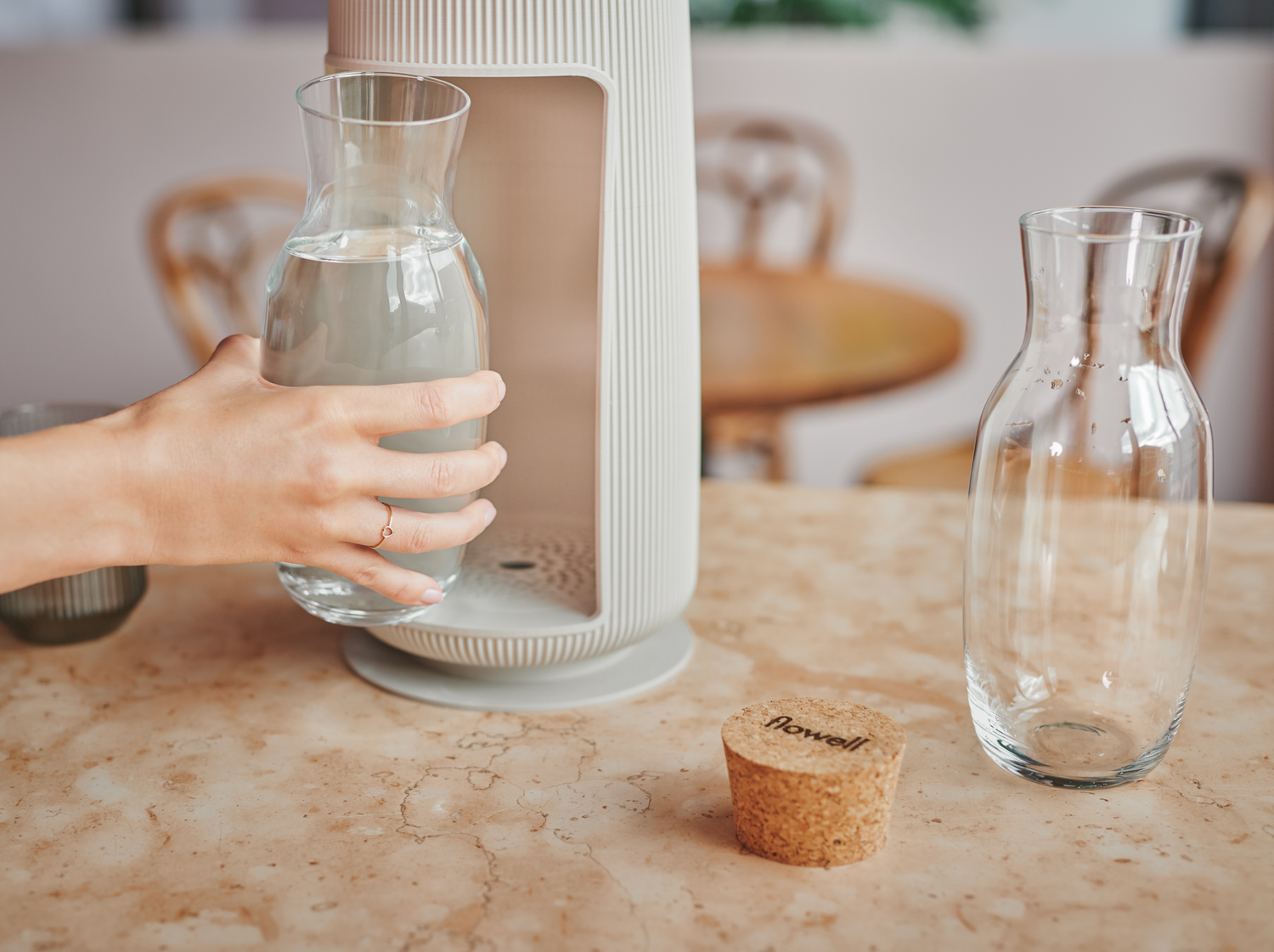 Unsere Filtertechnologie stellt sicher, dass dein Wasser frei von einer Vielzahl schädlicher Substanzen ist, einschließlich Viren, Bakterien, Mikroplastik, Chlor, Schwermetallen wie Blei und Arsen org., landwirtschaftlichen Chemikalien und sogar Medikamentenspuren. Mit flowell füllt sich dein Glas nur mit dem reinsten Wasser.